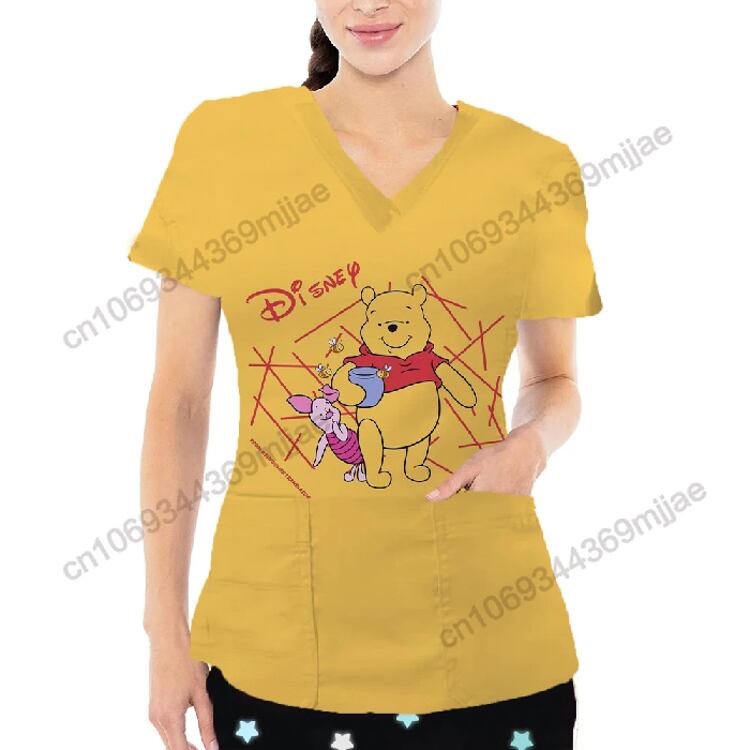 女性用VネックTシャツ,ナースユニフォーム,2K,ポケット付き,韓国スタイル,2023