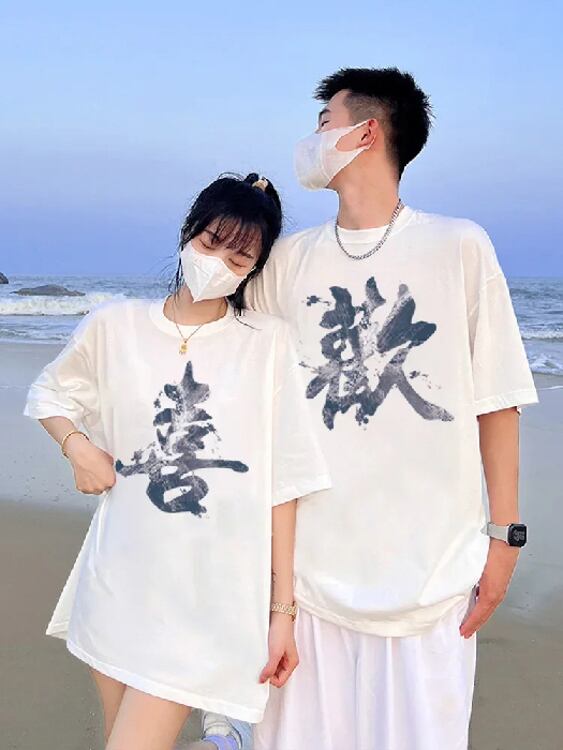 女性用半袖グラフィックTシャツ,カジュアル,特大,韓国,カップル用,ファッショナブル,原宿,夏★10