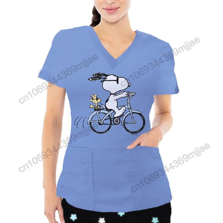 女性用Vネックトップス,ポケット付きナースユニフォーム,韓国風シャツ,y2kグラフィック,2023