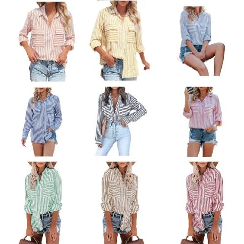 女性用長袖シャツ,ヨーロピアンスタイル,コットン,エレガント,ストライプ柄,春夏コレクション,ファッショナブル