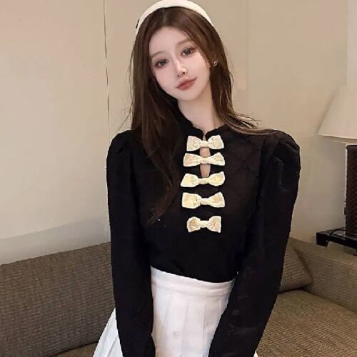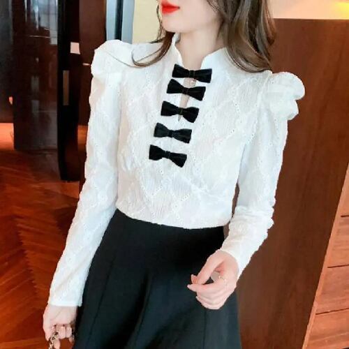 女性用長袖シャツ,スリムなレーストップ,フレンチデザイン,新しいデザイン,春と秋,2024