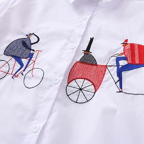 女性のカジュアルなボタンダウンカラーブラウス,長袖,綿の刺ladyブラウス,女性,白,新しい,2024, 5083 50