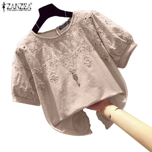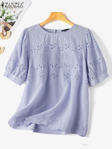 Zanzea-レディースレースかぎ針編みブラウス,半袖,ラウンドネック,エレガント,カジュアル,仕事,休暇,ファッショナブル,夏,2024