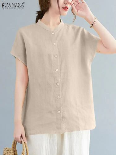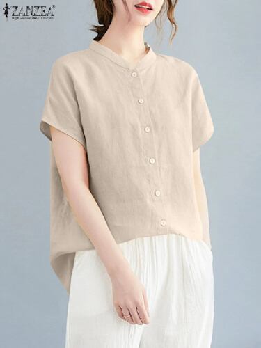 Zanzea-女性用半袖ブラウス,ボタン付き,ルーズフィット,カジュアル,ファッショナブル,夏