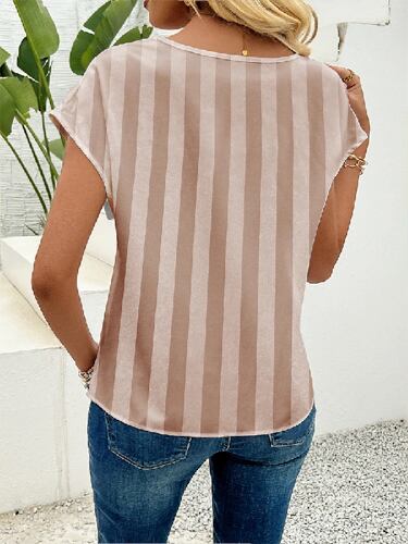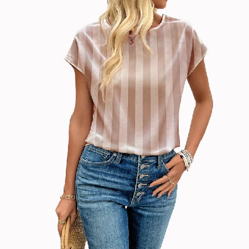 織りバットスリーブ織りブラウス、縞模様のサテン、エレガントなヴィンテージブラウス、スタイリッシュなカジュアル、夏