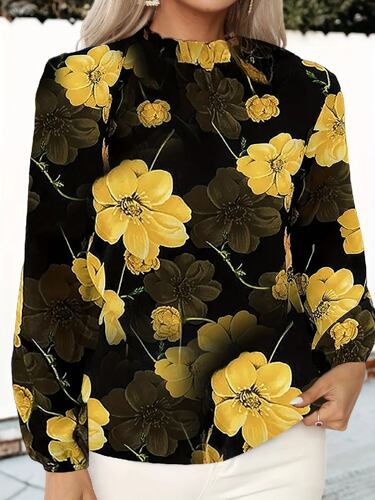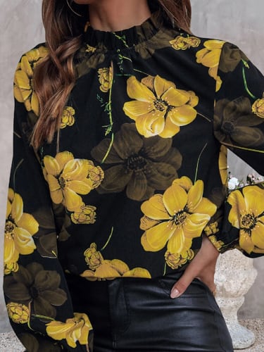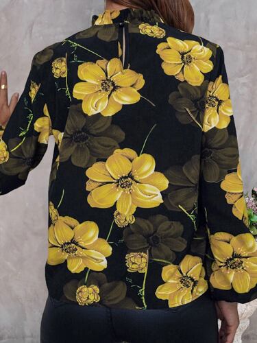 女性用フローラルプリントブラウス,スタンドカラー,長袖シャツ,女性用トップス,カジュアル,エレガント,ファッショナブル