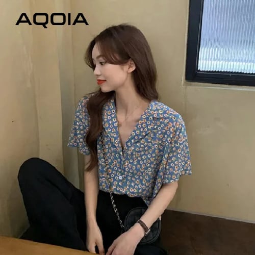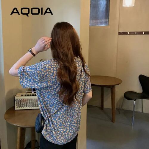 女性のヴィンテージフローラルプリントのボタンアップシャツ、シック、ノッチネック、半袖、女性のブラウス、ルーズチュニック、女性のシャツ、夏、2022