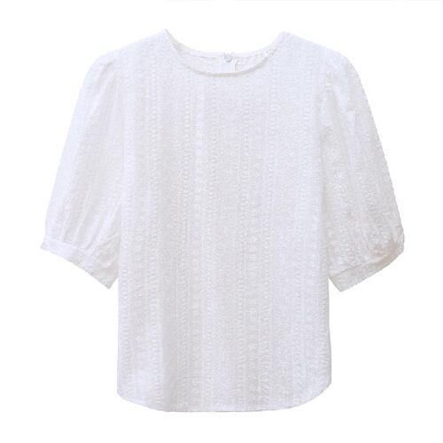 韓国-女性のための刺繍入りフローラルブラウス,ルーズなレースのシャツ,半袖,ラウンドネック,カジュアル,ホワイト,夏,新しい,甘い,15217, 2024