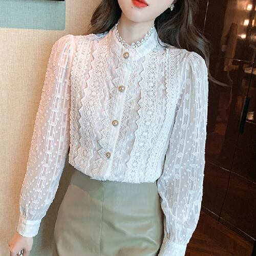 女性用ホワイトレースブラウス,長袖シャツ,女性用トップス,秋,e382,2022