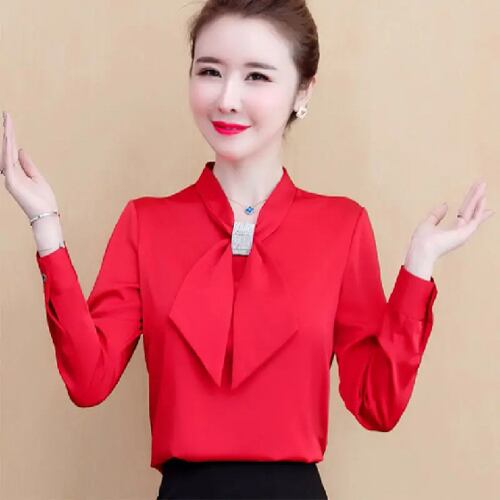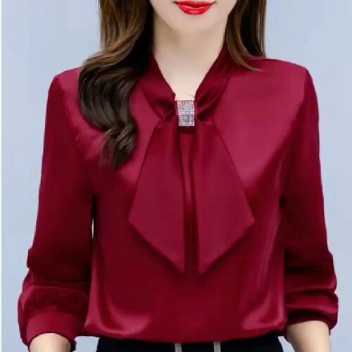 女性用サテンシャツ,韓国ファッション,光沢のあるトップ,Vネック,長袖,2023コレクション