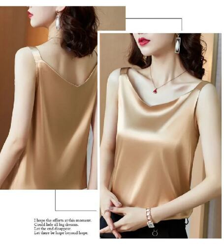 女性のためのエレガントなシルクサテンブラウス,ノースリーブ,カジュアル,ルーズ,無地,グリーンカム,サマー