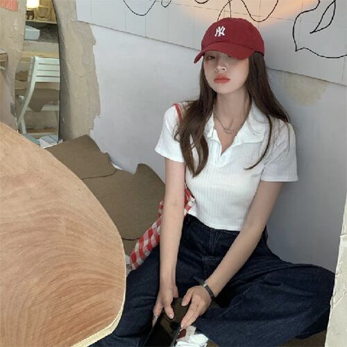 女性用半袖ボタンブラウス,y2k韓国シャツ,サマーファッション,愛らしい無地のラペル,すべてのマッチ,スリムクロップトップ,レディース,新作