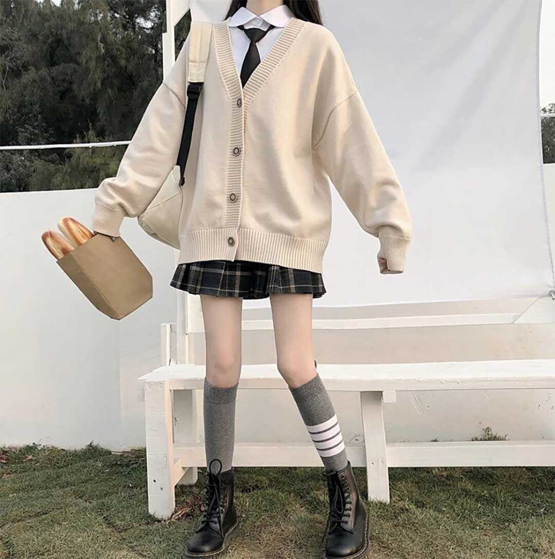 スクールニット カーディガン ベージュ 男女兼用 セーター 制服 学生服 高校 中学