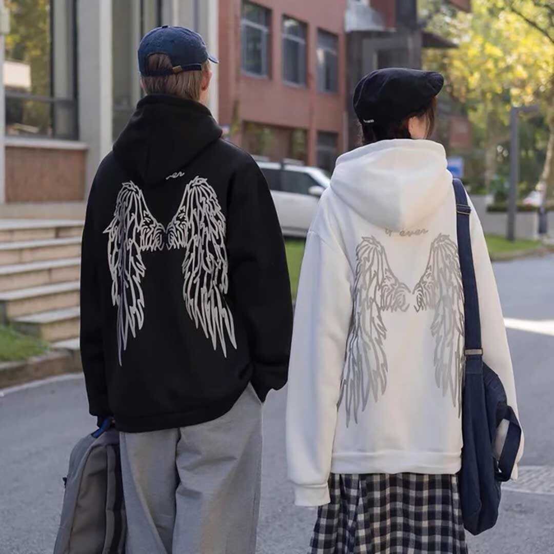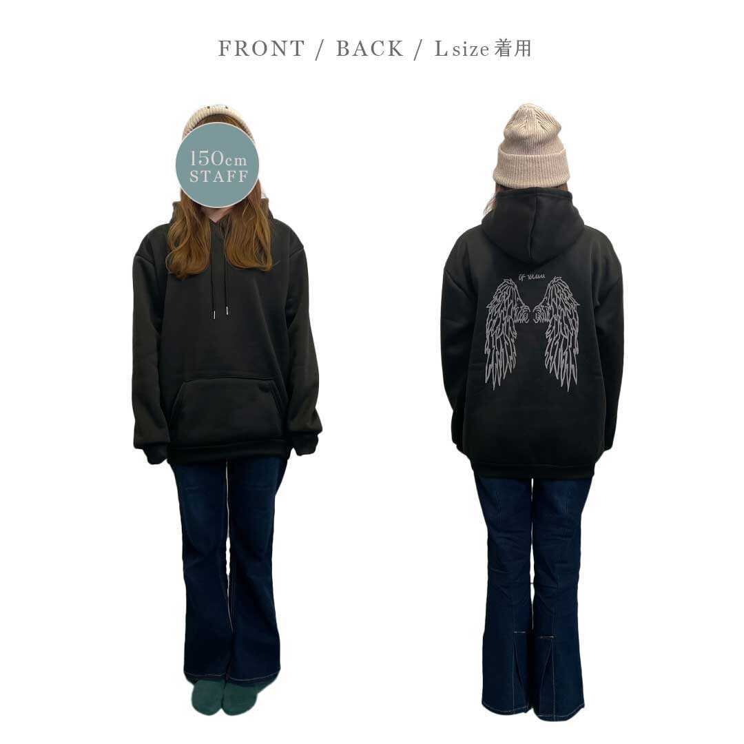 【在庫限り】 パーカー 羽根 反射 背中 ブラックorホワイト トップス プルオーバー 韓国