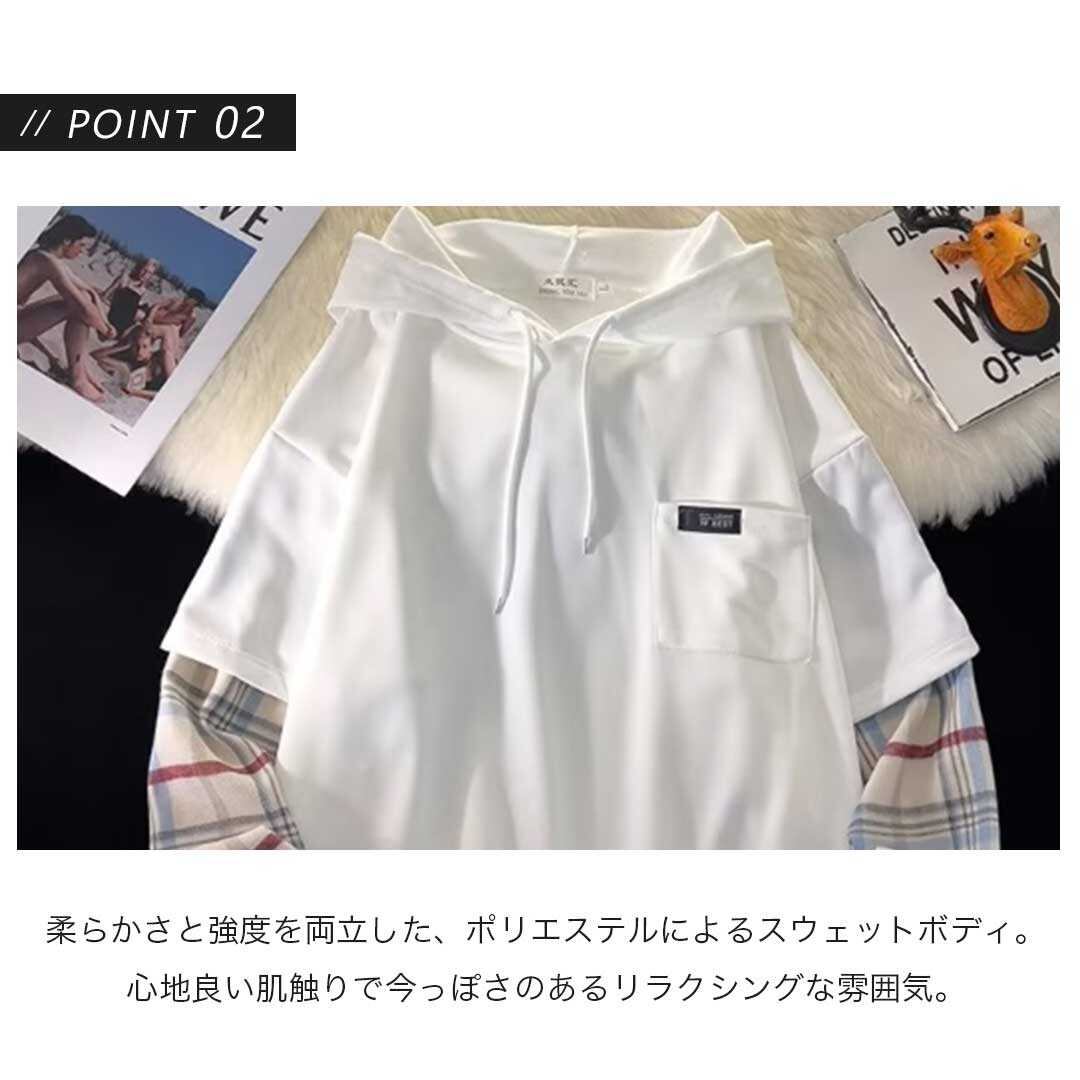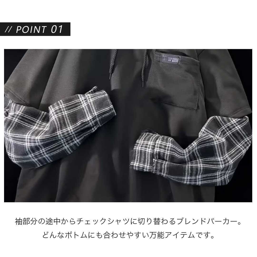 パーカー ツートンブレンドチェック チェック柄 全3色 ビッグシルエット トップス プルオーバー