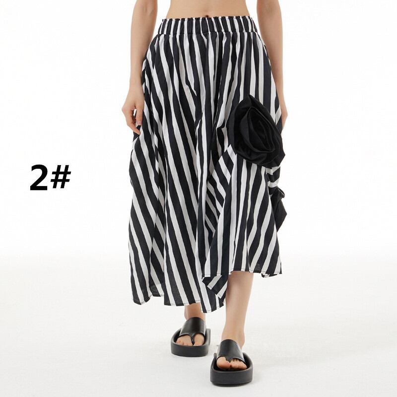 2024年夏新作 スカート ロング丈スカート ボトムス レディース ウエストゴム 不規則デザイン 個性