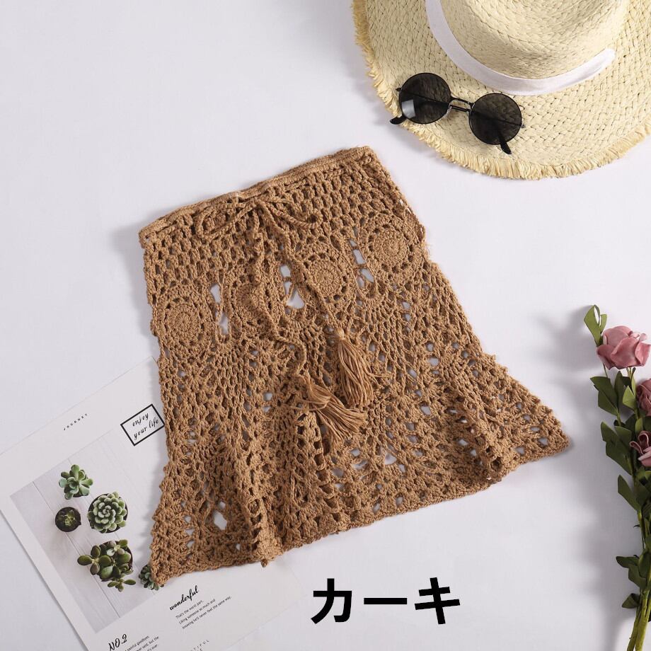 クロシェ編み スカート ボトムスのみ ビキニ ニット 水着 カバーアップ レディース 体型カバー 海 夏
