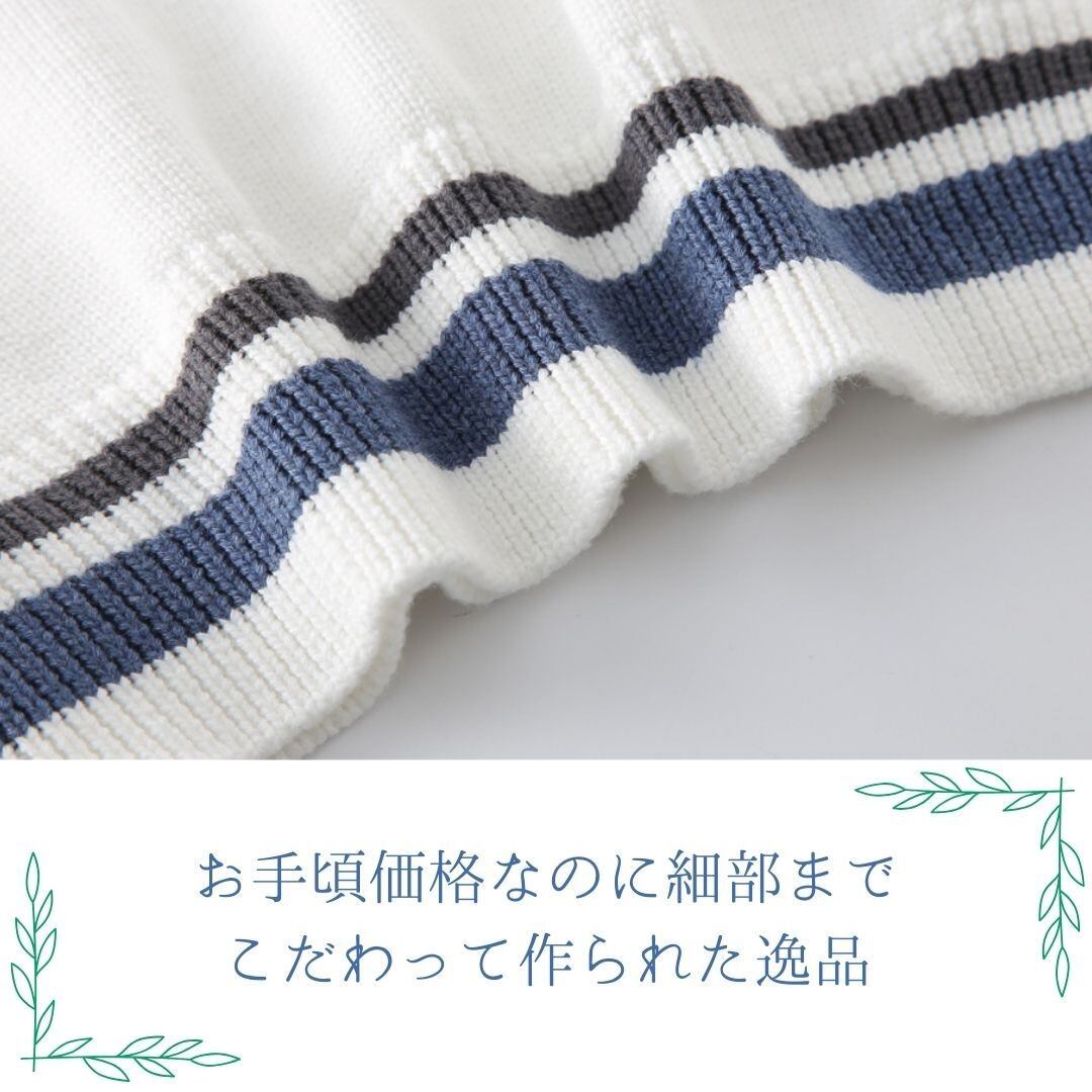 スクール ニットセーター 長袖 ライン入り 綿 ポリエステル Vネック ホワイト 男女兼用 セーター 制服