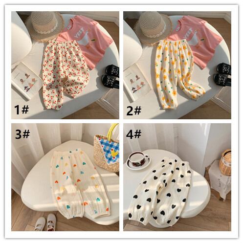 春夏新作 ボトムス ロングパンツ サクランボ柄 キッズ 子供服 カジュアル 可愛い 女の子 90-140cm