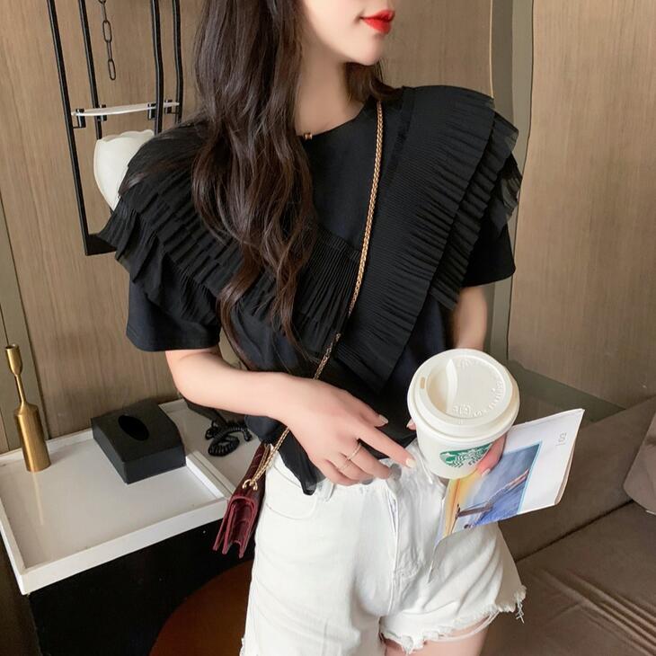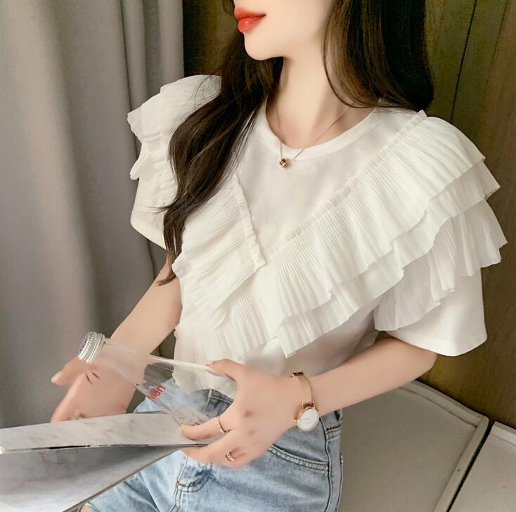 2021新作 Tシャツ フレアtシャツ シフォン ラウンドネック 半袖 レディーストップス 可愛い カジュアル
