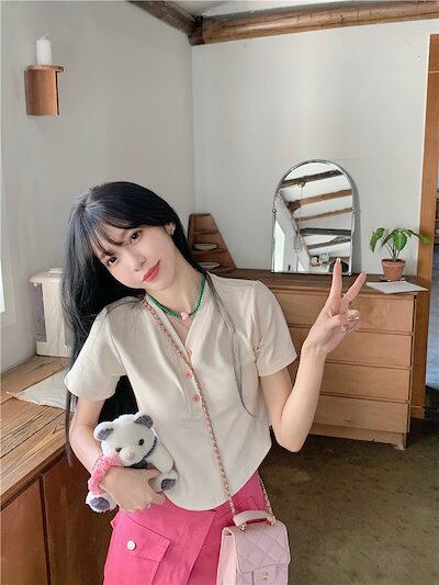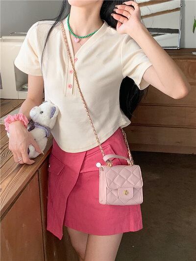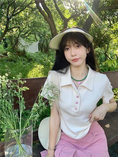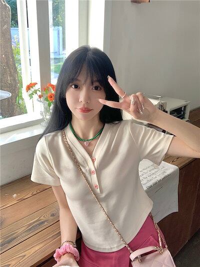 2024 春夏 甘い トップス Tシャツ ラウンドネック 3色展開丈 休日 ファッション スリムフィット丈短め ショート へそ出し 休日 おしゃれ T