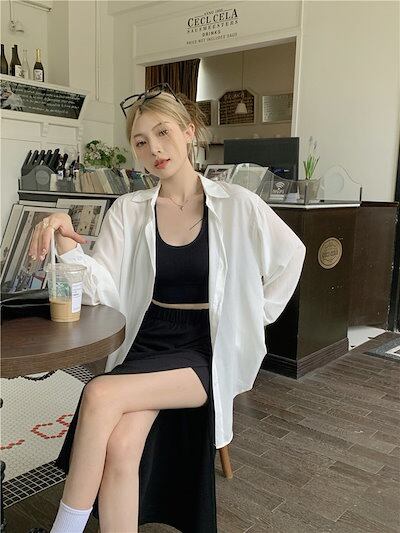 2024春夏トップス シャツ 長袖 ボタン 襟 スタンダードカラー バックオープン バック ゆったり 夏 白 ホワイト かわいい キュート おしゃれ 韓国ファッション レディース お出かけ