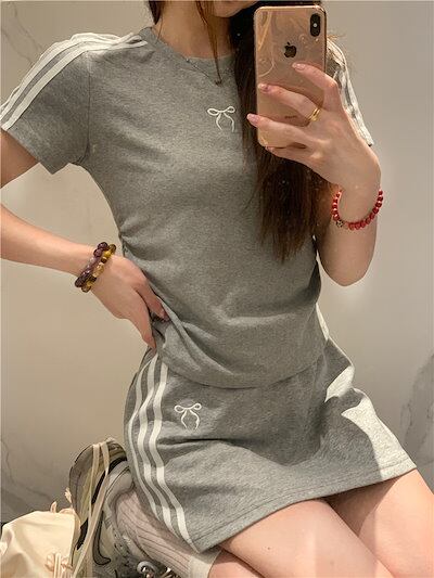 2024 春夏 甘い トップス Tシャツ ラウンドネック韓国 2色展開丈 休日 ファッション スリムフィット丈短め ショート へそ出し 休日 おしゃれ T