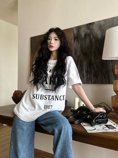 2024春夏 トップス Tシャツ ラグラン 長袖 丈長め ラウンドネックシルエットゆったり リラックス シンプル かわいい カジュアル韓国ファッションスリーブサイズお出かけ