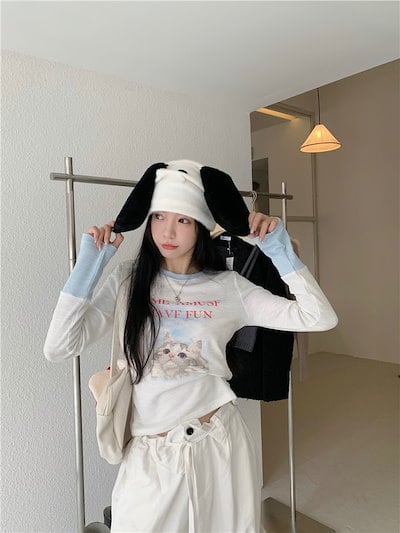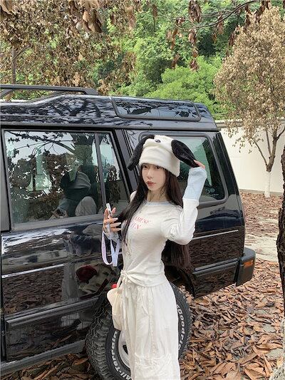 2024春夏 Tシャツ ショート カットソー 長袖 トップス カジュアル 配色 韓国ストリート タイト スリーブ 肌見せ T ファッション かわいいトップス レディース