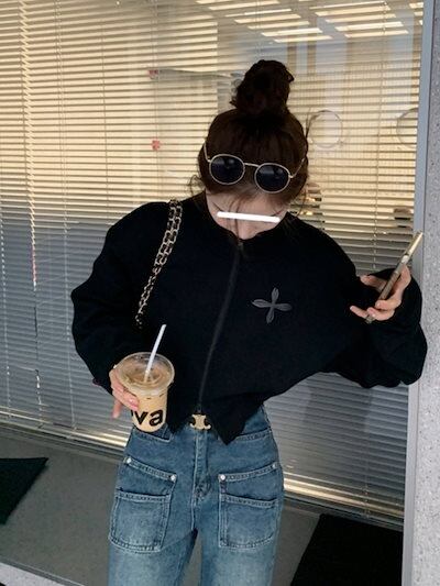 2024夏 韓国 アウター ショート ブルゾン かわいいフル アウター トップス ハイスタンド ショートストリートレディース長袖 カジュアル ファッションお出かけトラック