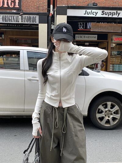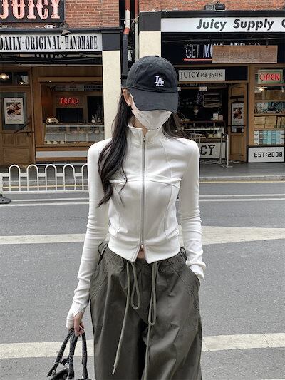2024春夏 アウター ショート ブルゾン かわいいフル ブルゾン トップス ハイスタンド ショートストリートレディース長袖 カジュアル ファッションお出かけトラック