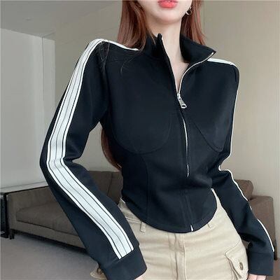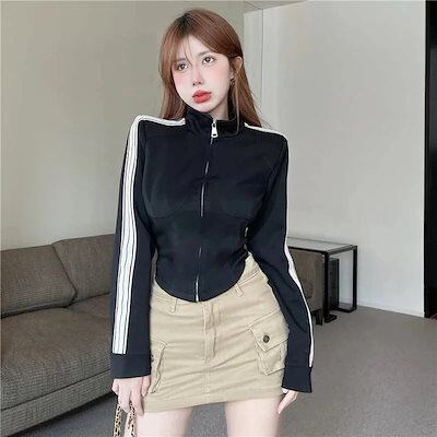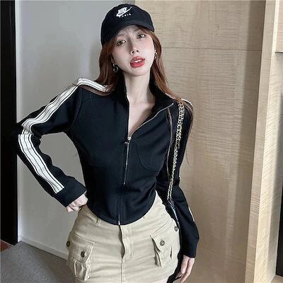 2024 春夏 ショート かわいい フル ブルゾン トップス アウター ショート スタンドショートお出かけハイストリートレディースアウター長袖セクシー トップスカジュアルファッション夏トラック