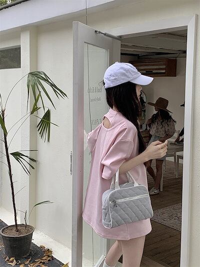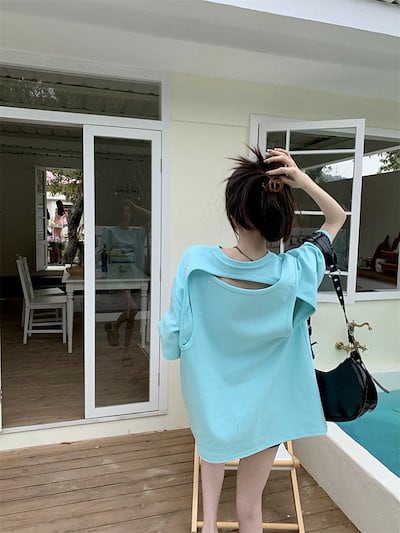 2024春夏トップス Tシャツ 半袖 ラウンドネック バックオープン ゆったり 細見え かわいい ガーリー キュート おしゃれ 韓国ファッション レディース お出かけ