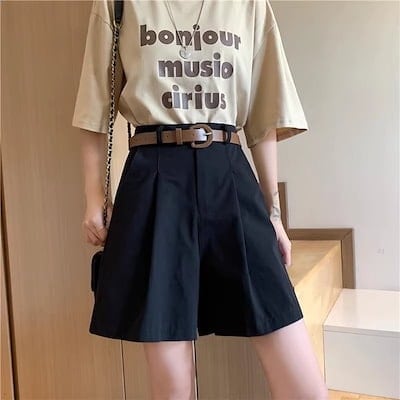 2024 春夏セット ベルト付き パンツ ショート丈 ハーフパンツ 五分丈 ワイド ハイウエスト 美脚効果 脚長効果 細見え 夏 白 黒 茶色 韓国ファッション レディース かわいい おしゃれ カジュ
