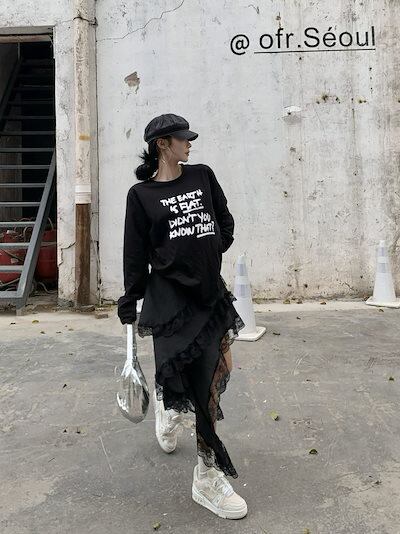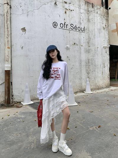 2024春夏 トップス Tシャツ ラグラン 長袖 丈長め ラウンドネックシルエットゆったり リラックス シンプル かわいい カジュアル韓国ファッションスリーブサイズお出かけ