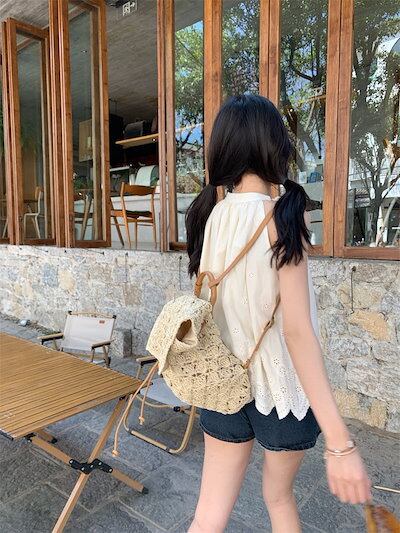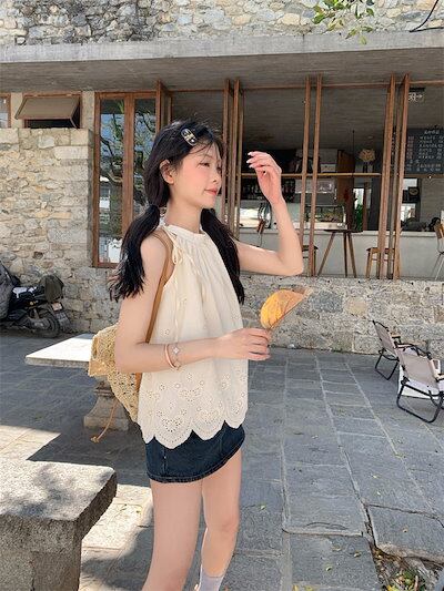 2024春夏トップス シャツ ノースリーブ ホルターネック レース ゆったり 夏 白 ホワイト おしゃれ かわいい ガーリー 韓国ファッション レディース お出かけ