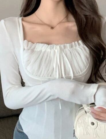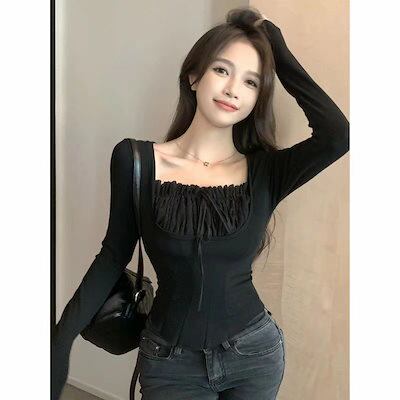 2024春夏ピタッとシルエットで女っぽ リブニット トップス フィット 韓国 カジュアル丈レディース フェミニン 色っぽ
