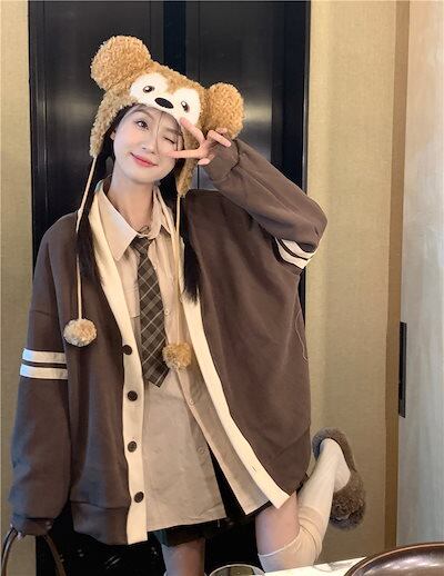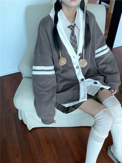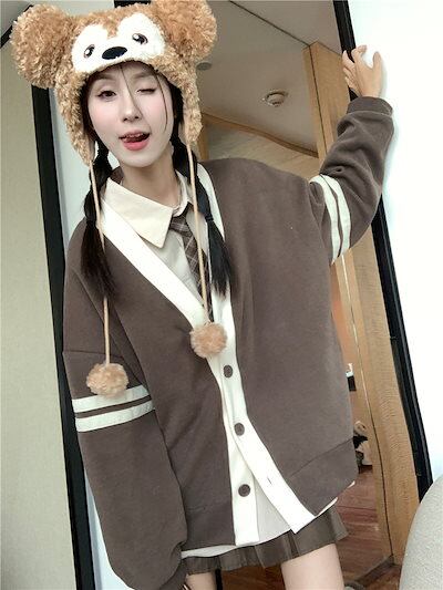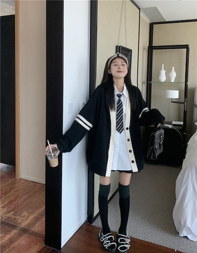 2024 春夏 アウター 長袖 秋 ストライプ ボタン コントラストカラー ファッション おしゃれ 可愛い Vネック 休日 お出かけ スタイル