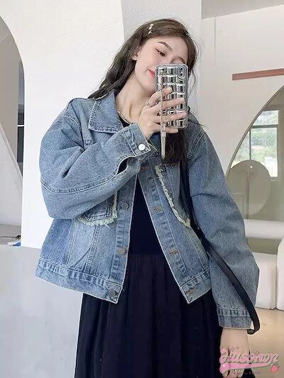 2024春夏 デニムジャケット 羽織り 秋服 カジュアル デニム スポーティー 可愛い 大人加工ショートアウター かっこいい