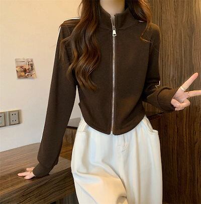 ショート かわいい フル ブルゾン トップス アウター ショートハイ スタンド ショート お出かけ ストリート レディース アウター 長袖 セクシー トップス カジュアル ファッション夏秋トラック
