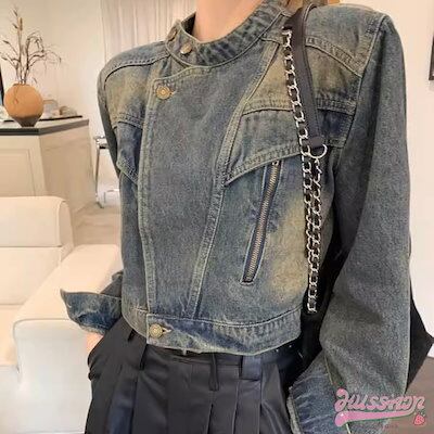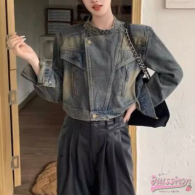 2024春夏 アウター デニム生地 ジャケット ファッション感 丈短め ボタン 加工 秋 ファッション おしゃれ お出かけ