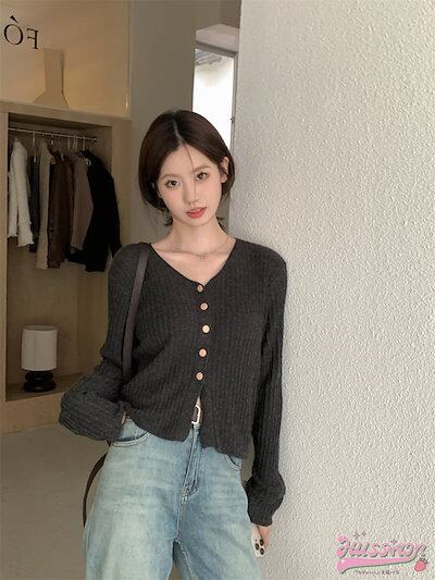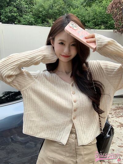Vネック長袖セーター レディース 長袖 アウターカーディガン 韓国ファッション 可愛い シンプル 大人