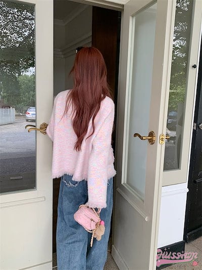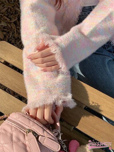 アウター ジャケット ラウンドネック ノーカラー ピンク もこもこ フリンジ ボタン 秋 韓国ファッション レディース おしゃれ かわいい きれいめ お出かけ