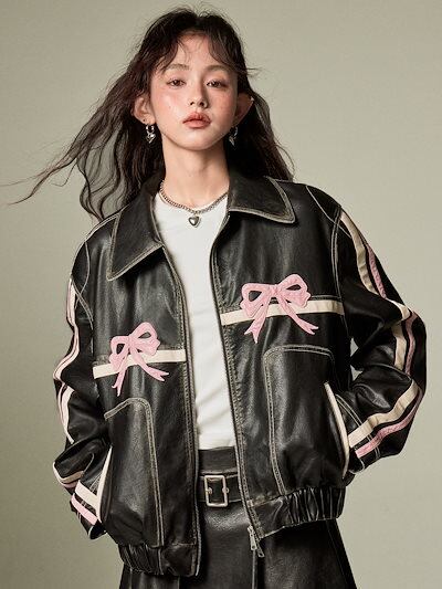 2024 春 甘くてかっこいい 長袖 韓国ジャケット かわいい ショート アウター ブラック 羽織りレディース合成 バイカラーカジュアル 女っぽ きれいめ ファッション 色っぽ 大人