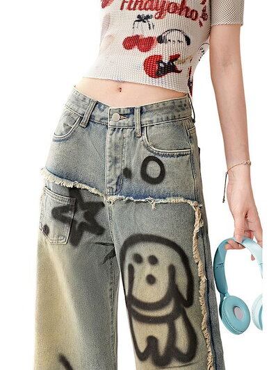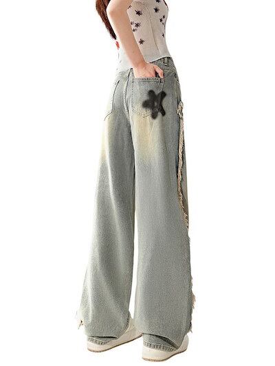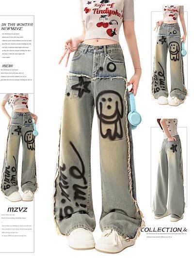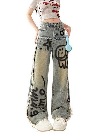 ワイドカーゴパンツ レディース ハイウェスト チェーン ボトムス 大きいサイズ 体型カバー ゴム 地雷系しっかりデザインパンツ ストリート Y2K 個性的★1