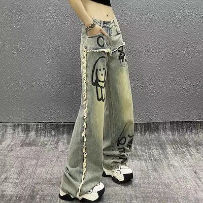 ワイドカーゴパンツ レディース ハイウェスト チェーン ボトムス 大きいサイズ 体型カバー ゴム 地雷系しっかりデザインパンツ ストリート Y2K 個性的★3