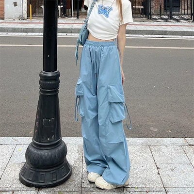 カーゴパンツ 夏 新作 ワイドパンツ Y23K カラー マルチポケット 流行り ストレート モップパンツ