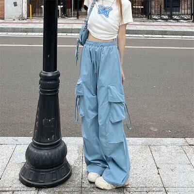 カーゴパンツ 夏 新作 ワイドパンツ Y64K カラー マルチポケット 流行り ストレート モップパンツ