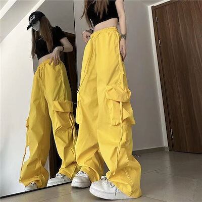 カーゴパンツ 夏 新作 ワイドパンツ Y65K カラー マルチポケット 流行り ストレート モップパンツ
