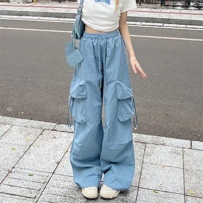 カーゴパンツ 夏 新作 ワイドパンツ Y71K カラー マルチポケット 流行り ストレート モップパンツ